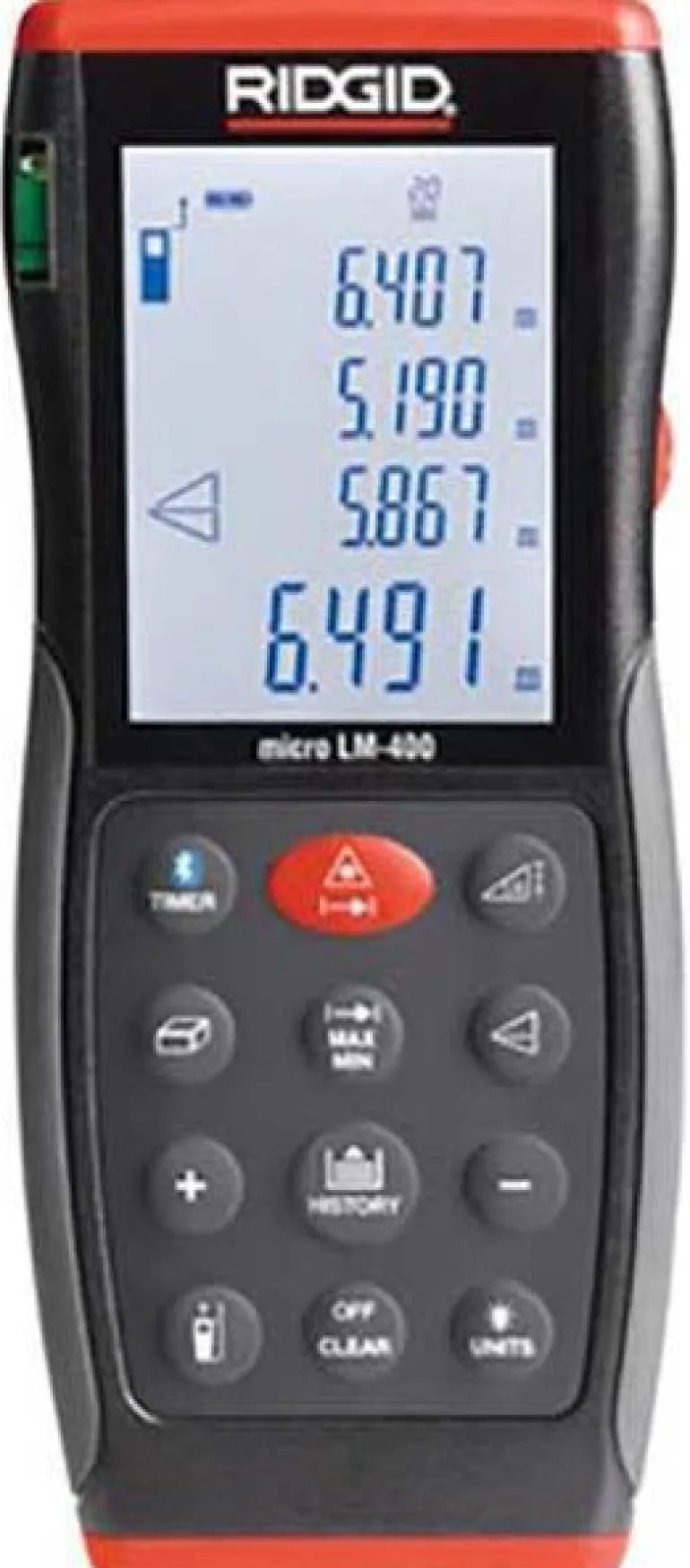Malli on yhteensopiva RIDGIDsketch-sovelluksen kanssa – se on mobiililaitteille tarkoitettu työkalu, jonka avulla voit laskea ja jakaa projektiesi mittauksia. Sitä voidaan käyttää itsenäisesti tai yhdessä RIDGID LM-400 laseretäisyysmittarin kanssa. Sovellus muodostaa yhteyden LM-400:een Bluetoothin kautta ja vastaanottaa langattomasti tarkat mittaukset laitteesta. RIDGIDSketch toimii sekä piirustustilassa että valokuvatilassa, jolloin voit tuottaa tarkkoja huonepiirustuksia tai piirtää mittoja valokuvaan.