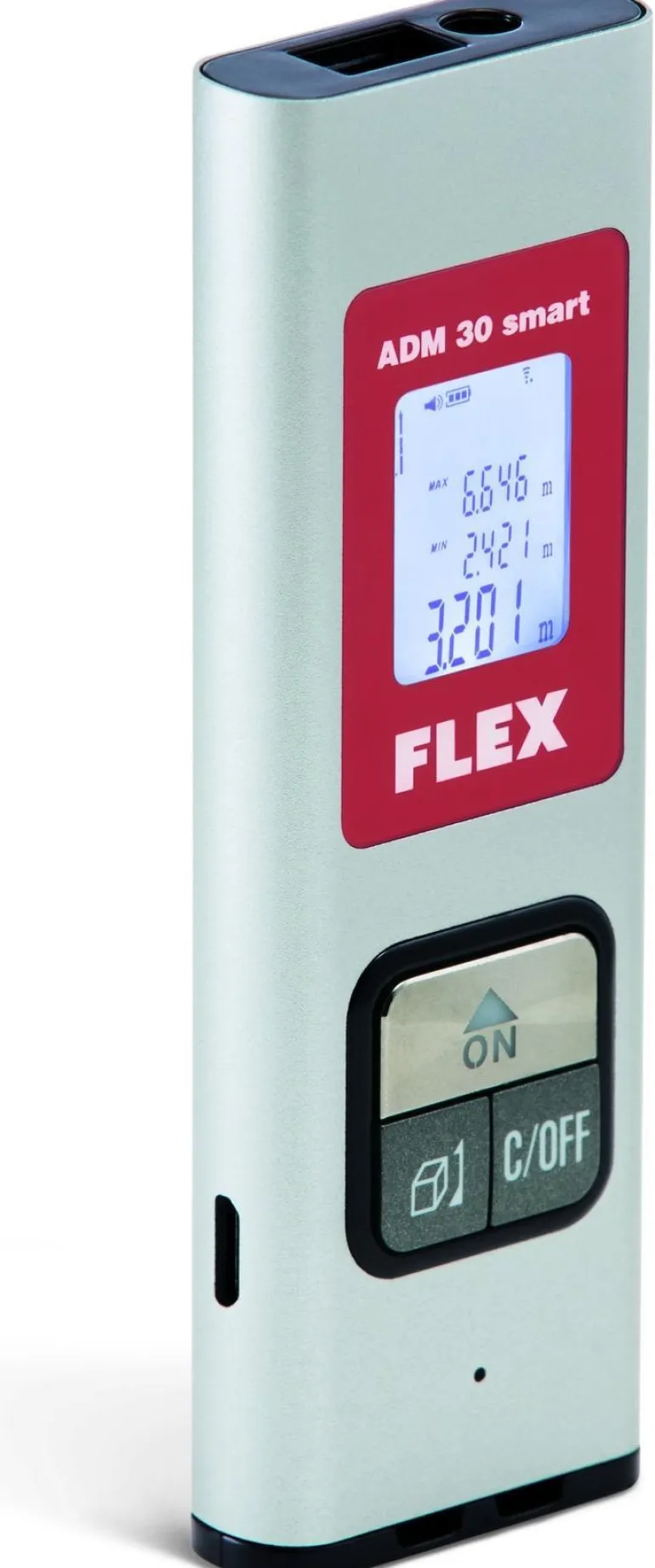 Flex ADM30 SMART on erittäin kevyt ja kätevä etäisyysmittari, jolla mittaaminen onnistuu helposti napin painalluksella. Mittaa pituuden, pinta-alan, tilavuuden ja epäsuorat mittaukset. Kirkas laserpiste helpottaa näkyvyyttä. Hyvän näkyvyyden ansiosta mitattava alue voidaan helposti tarkistaa. Tarjoaa nopeat mittaustulokset ilman viiveitä. Tehokkaan elektroniikan ja hienostuneen optiikan ansiosta mittaustulos on heti saatavilla, ei arvioinnin odottelua, eikä optisista epätarkkuuksista johtuvia viiveitä.