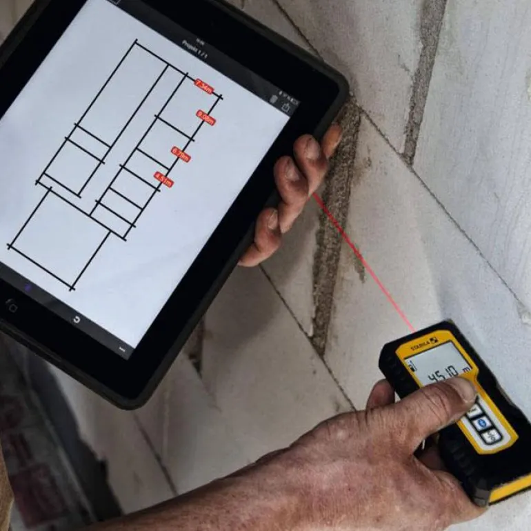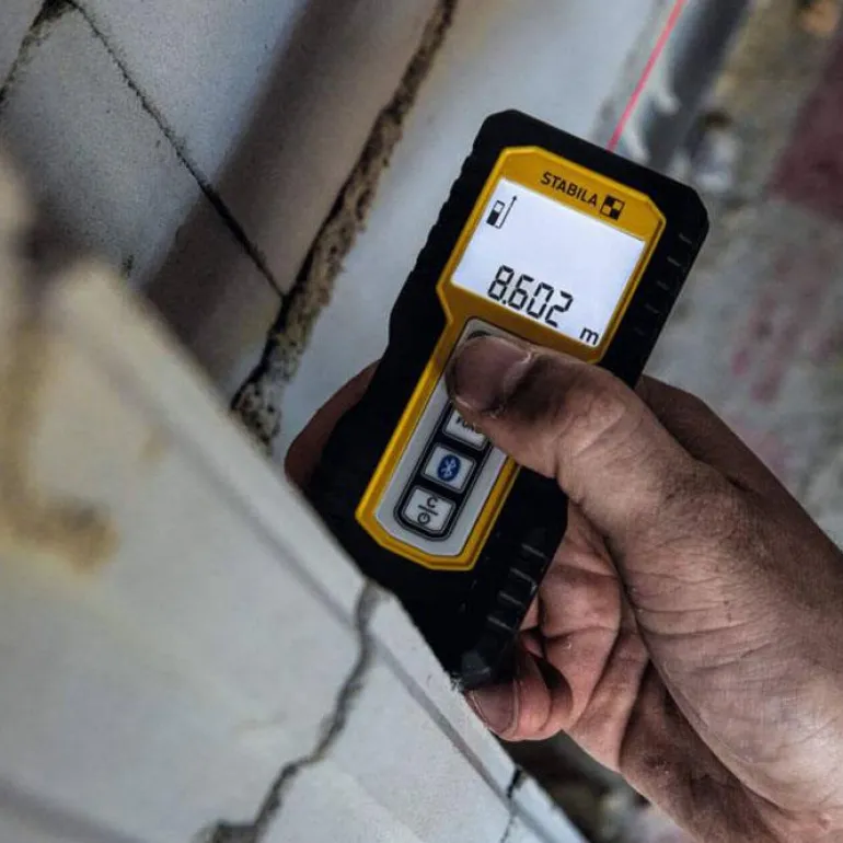 Stabila LD 250 BT on Bluetoothilla varustettu etäisyysmittari, joka helpottaa mittausta ja dokumentointia. Sisäänrakennetun Bluetooth Smart 4.0 -yhteyden avulla voit mitata nopeasti ja tiedot voi sitten siirtää langattomasti älypuhelimeen tai tabletille.