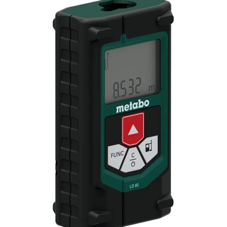 Metabo LD 60 on laserluokan 2 etäisyysmittari, jonka mittausalue on 0,05-60 m. Mittari voi tehdä 5000 mittausta per akun lataus on suojattu IP 40:n mukaisesti. Kätevä ja vahva rakenne, kestävä kotelo ja Softgrip-runko sekä valaistu nestekidenäyttö, jota on helppo lukea myös huonoissa valo-olosuhteissa.
