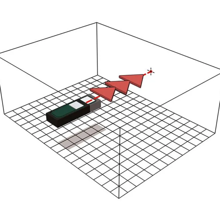 Etäisyysmittari, laserluokka 2 ja mittausalue 0,05-60 m. Mittari voi tehdä 5000 mittausta yhdellä akunlatauksella, IP 40-suojausluokka. Kätevä ja vahva rakenne, kestävä kotelo ja Softgrip-runko sekä valaistu nestekidenäyttö, jota on helppo lukea myös huonoissa valo-olosuhteissa.