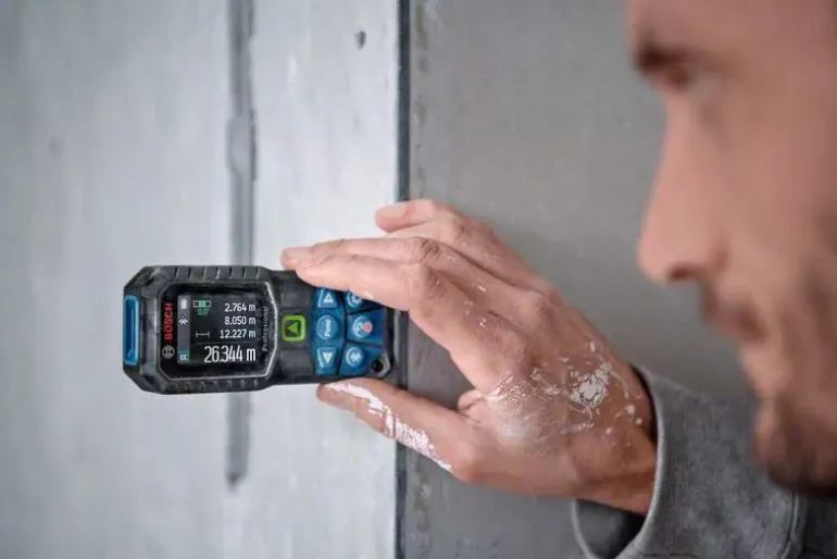 IP 65-luokitellun rakenteen ja iskuja vaimentavan kotelon yhdistelmän ansiosta se kestää 1,5 metrin putoamisen kovalle betonille ja muissa vaativissa ympäristöissä. Bluetooth®-yhteensopivuus ja Bosch MeasureOn -sovellus tarjoavat nopean dokumentoinnin ja mittaustulosten siirron hetkessä.