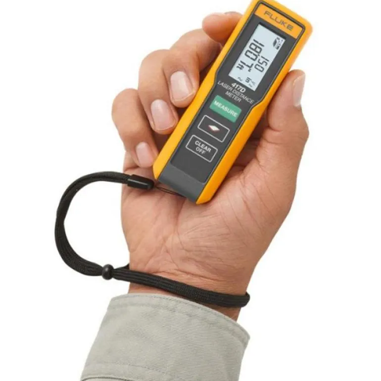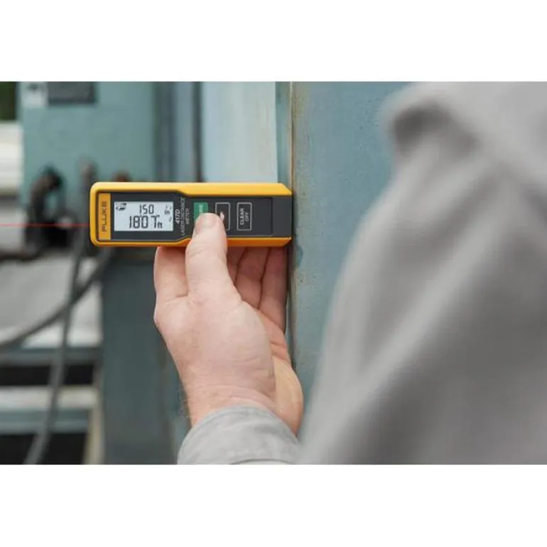 Fluke 417D on tarkka, kestävä ja helppokäyttöinen etäisyysmittari, jonka tyypillinen toimintasäde on 0,2-40 m. Mittaa jopa 40 m suoraan osoittamalla ja napsauttamalla painiketta. Yksinkertaisen muotoilun ja yhdellä painikkeella käytettävällä laitteella voit minimoida mittausajan ja samalla maksimoida tarvittavien mittausten luotettavuuden. Fluke 417D laseretäisyysmittari on suunniteltu sisä- ja ulkokäyttöön, ja se on Flukelle ominaisesti erittäin kestävä ja laadukas. Mittarissa on yksinkertaiset toimintopainikkeet, jotka tekevät kolmesta eri mittaustehtävästä nopeita ja helppoja. Erittäin kirkas laser on erittäin selkeä, näet aina tähtäyskohdan, vaikka kohde on vaikeasti saavutettavissa tai kaukana. 417D:ssä on suuri kaksirivinen valaistu LCD-näyttö ja kolme painiketta, jotka helpottavat yhden käden mittauksia.