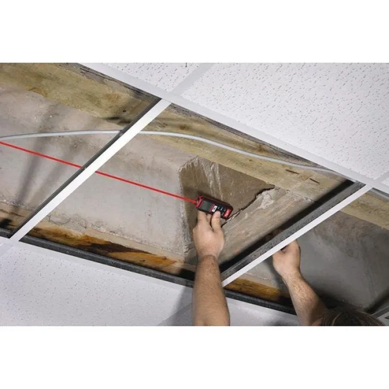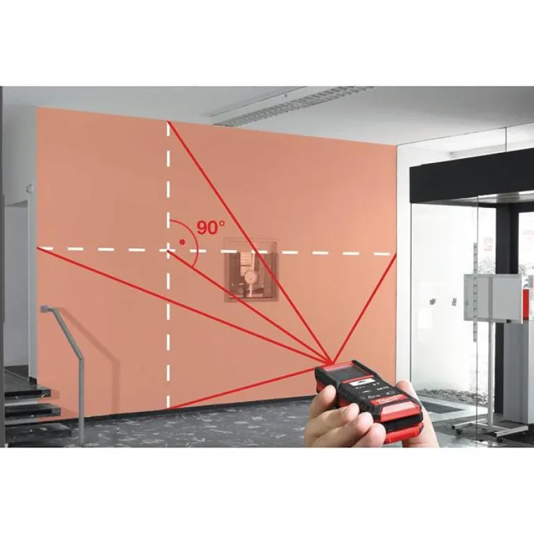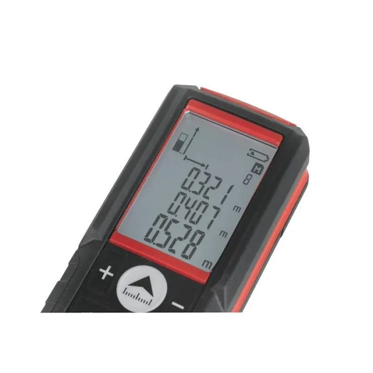 Etäisyysmittari, joka mittaa sisätiloissa 50 metriin asti. Tarkkuus ± 1,5 mm. Varustettu kolmen rivin LCD-näytöllä ja automaattisella taustavalolla.