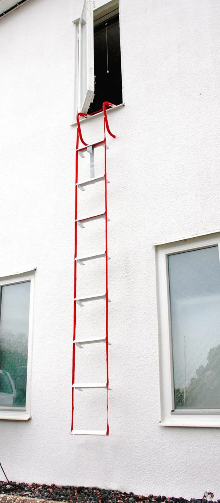 Kevyet ja joustavat tikkaat esim. Evakuointia varten. Alumiiniportaat ja kudotut palosuojatut PP-hihnat. Porras on suunniteltu siten, että se on aina 80 mm julkisivusta, askelman leveys on 305 mm. Vapautetaan helposti käsin. Voi käsitellä jopa 300 mm:n paksuja seiniä. Enimmäiskuorma 450 kg.