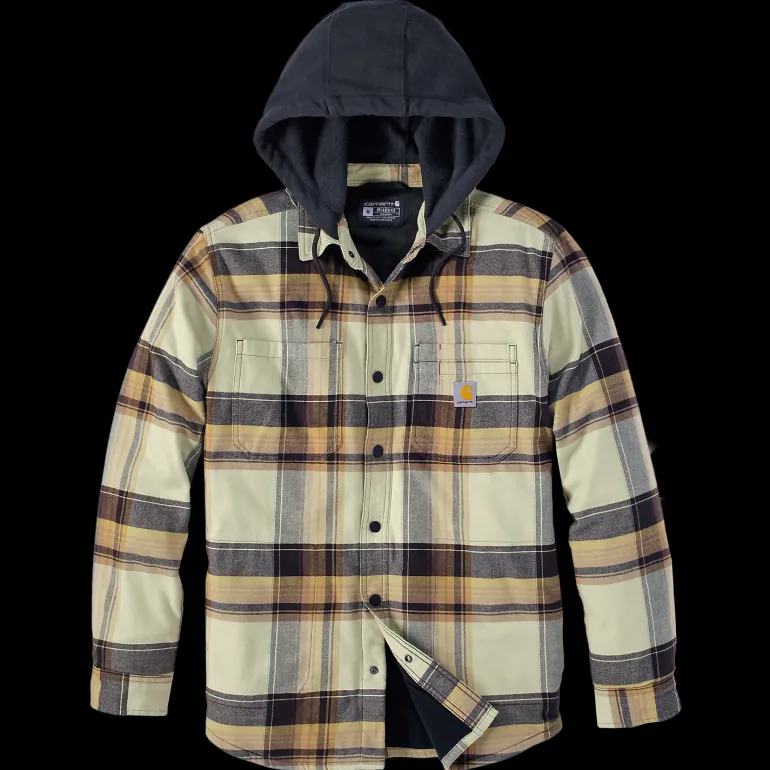 Carhartt 105938B10-L on hupullinen vuorillinen flanellipaita Loose Fit-istuvuudella. Kiinteä kolmiosainen huppu kiristysnauhalla. Kaksi rintataskua, joista vasemmassa kynätasku. Kaksi etutaskua sivuilla (käsienlämmitystaskut). Napillinen etulista ja hihansuut. Helma kaarevalla leikkauksella edessä ja takana.