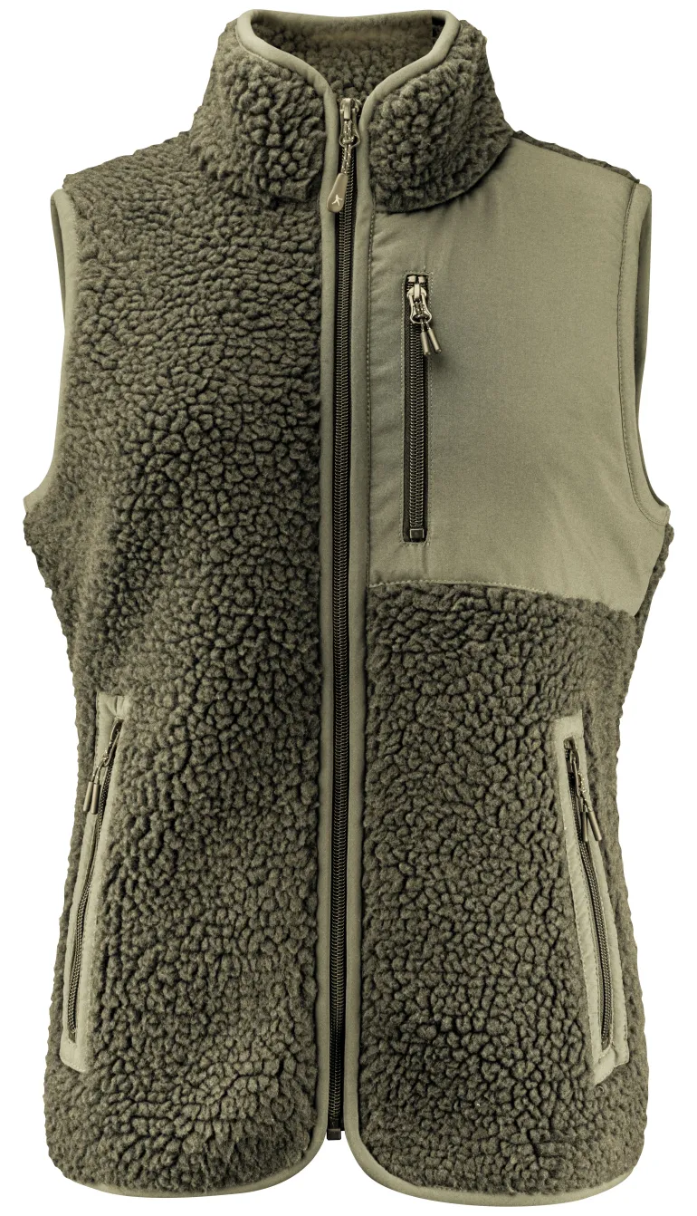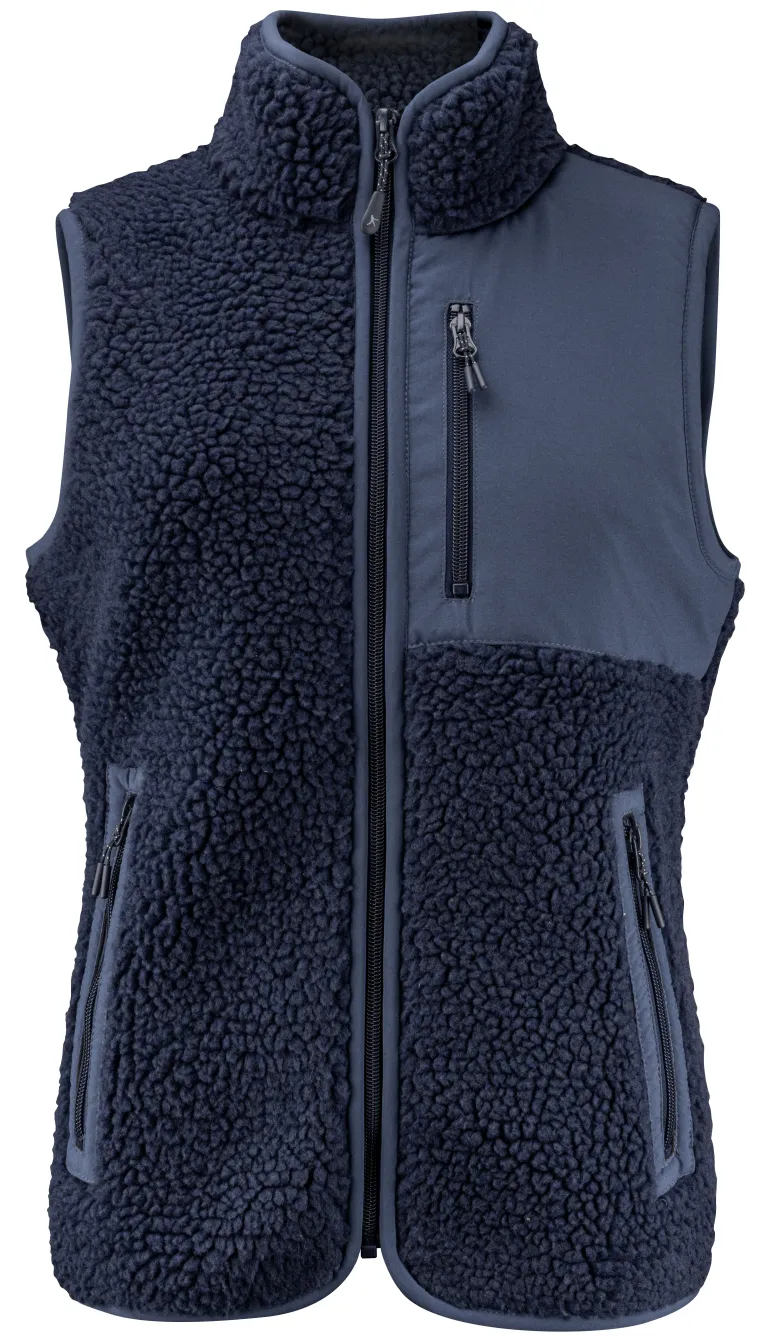 James Harvest Kingsley Sherpa Fleece Woman Vest on naisten kaksivärinen fleeceliivi, jossa kontrastivärinen alue rinnassa sekä vetoketjullinen rintatasku ja etutaskut. Pakattu biopohjaiseen, kompostoituvaan pussiin.