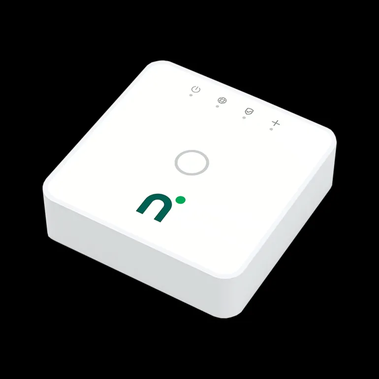 Nimly Connect Gateway, joka yhdessä Nimly Connect -moduulin kanssa mahdollistaa yhteyden muodostamisen älylukkoon ja etäohjauksen Nimlyn oman sovelluksen kautta.