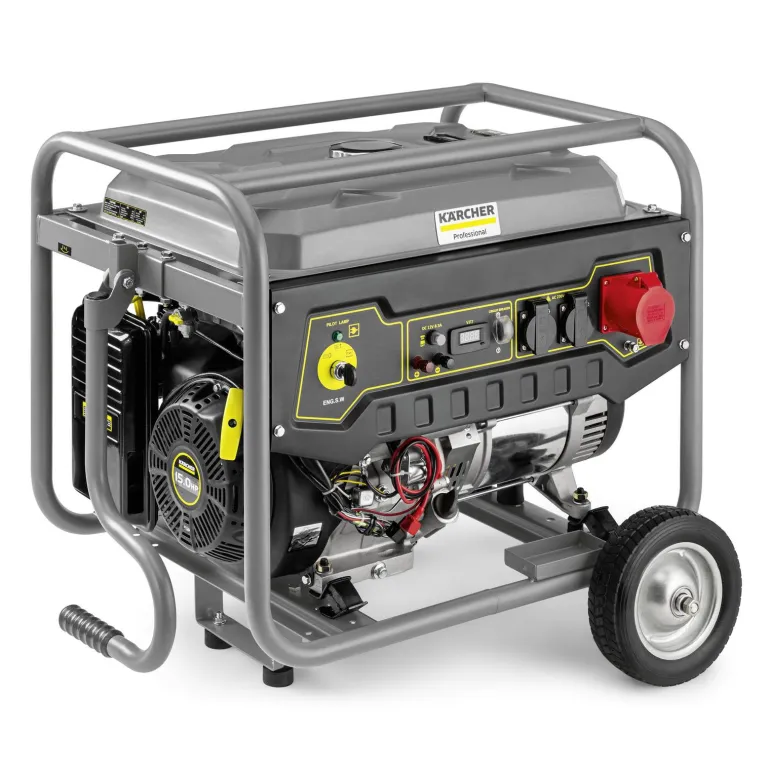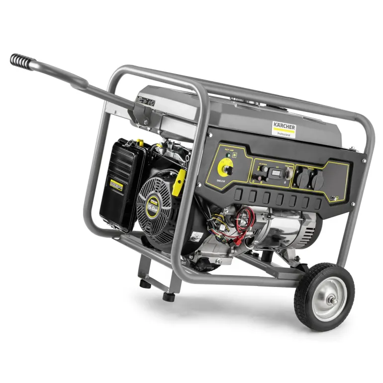 Puhkeamattomien pyörien ja taitettavan työntökahvan ansiosta sitä on helppo kuljettaa ja liikuttaa kohteesta toiseen. Generaattorin 25 litran bensiinisäiliö takaa pitkän käyttöajan, jopa 7 tuntia (myös täydellä teholla jopa 5,5 tuntia). Luotettava nelitahtinen bensiinimoottori varmistaa jatkuvan 7 kW:n tehon. PGG 8/3 generaattorissa on kaksi maadoitettua pistorasiaa (AC) ja yksi 400 V:n pistoke (kolmivaihevirta), joka tarjoaa runsaasti kytkentävaihtoehtoja laitteillesi. Automaattinen jännitesäädin (AVR) mahdollistaa myös herkkien elektronisten laitteiden toiminnan. Vakiona ylikuormitus- ja öljymäärän merkkivalo. Vankka putkimainen teräsrunko suojaa konetta kuljetuksissa ja varastoinnissa.