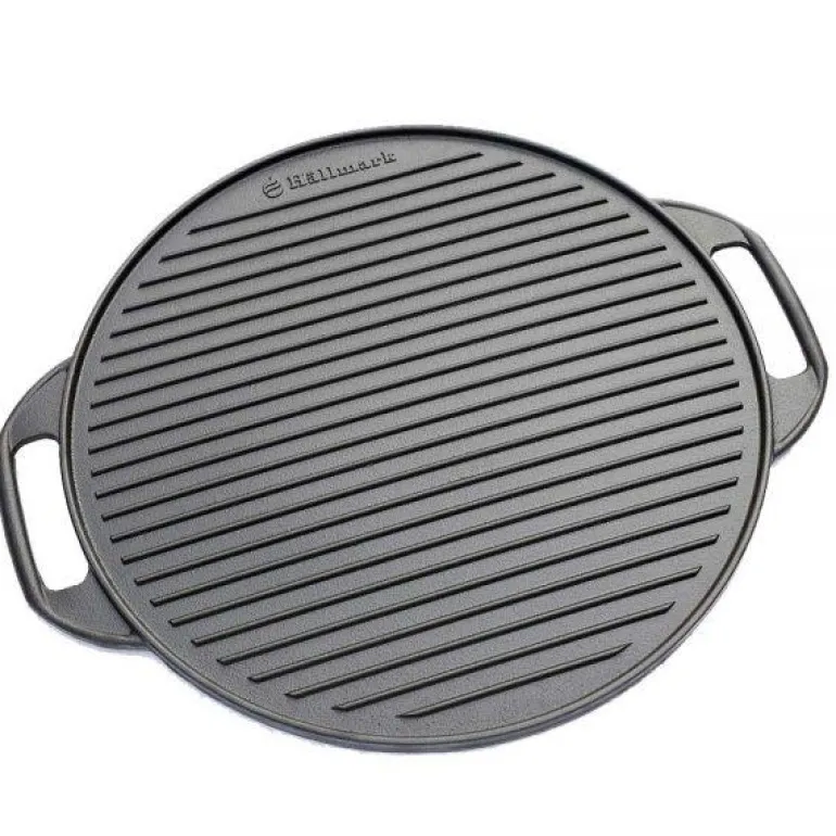 Grillilevy, jonka halkaisija on 42 cm, voi käyttää molemmin puolin – uritetulla puolella grillaamiseen ja sileälla puolella paistamiseen. Valmistettu valuraudasta ja soveltuu käytettäväksi Hällmarkin 30 tai 40 cm kaasupolttimen kanssa.