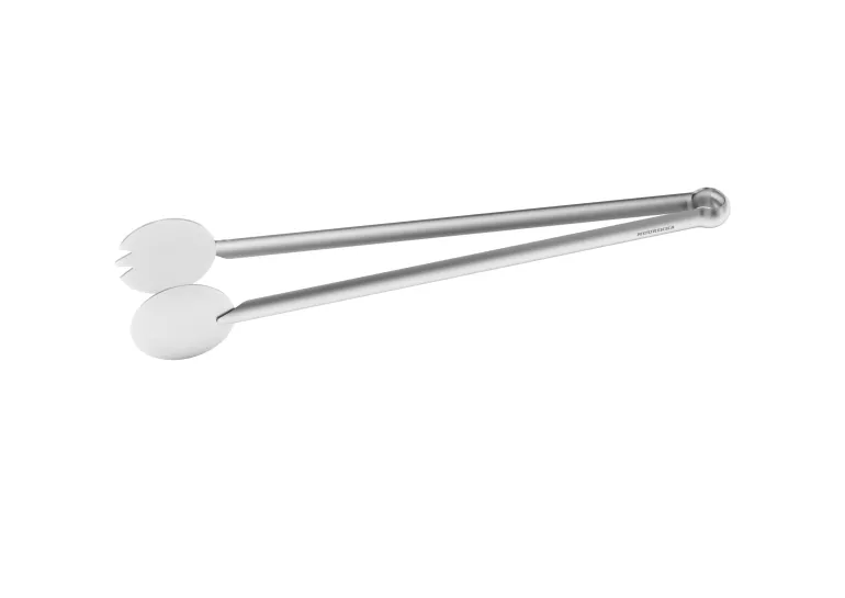 Ruostumattomasta teräksestä valmistetut grillipihdit, joita voidaan käyttää myös salaattiottimina. Pituus 34 cm.