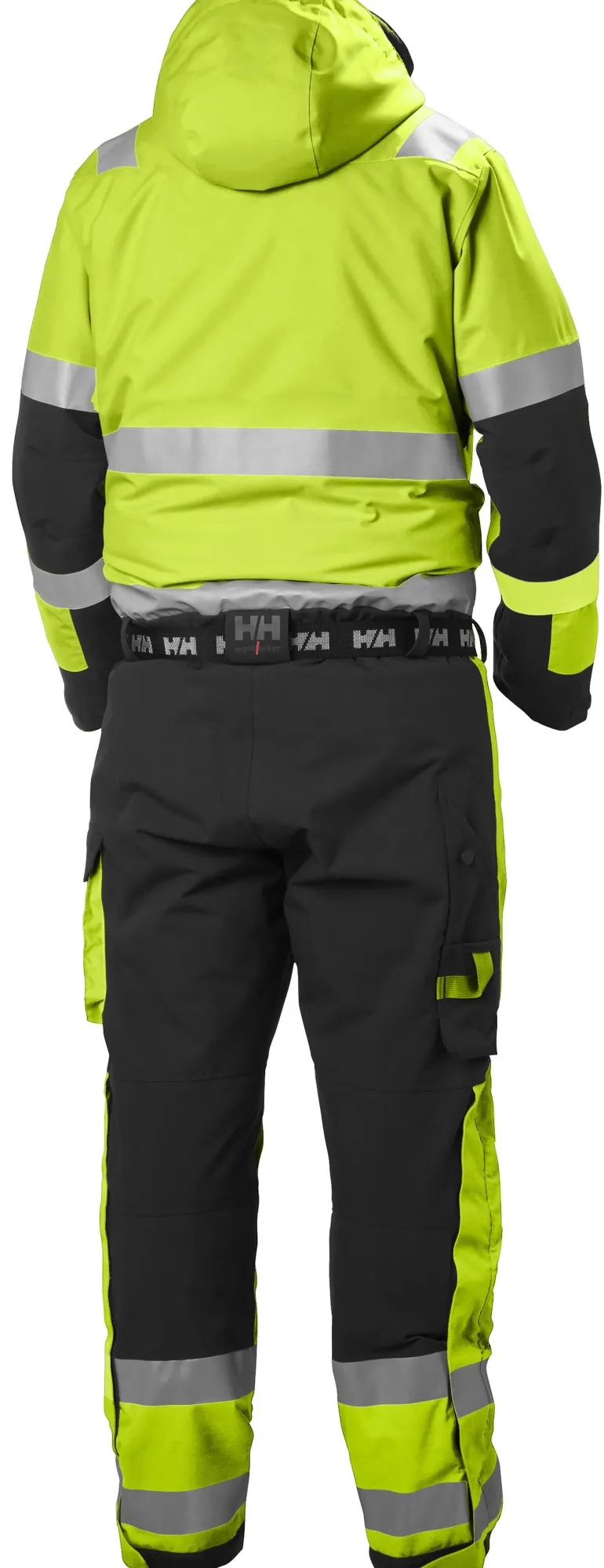 H/H Workwear Alna on veden- ja tuulenpitävä sekä hengittävä talvihaalari. Haalarissa on kokonaan teipatut saumat, irrotettava huppu ja pehmustettu kaulus harjatulla polyesterillä. Varustettu kaksisuuntaisella YKK-vetoketjulla ja kaulansuojalla. Ranteessa on säädettävät hihansuut, irrotettava vyö. Mallissa on nostokiinnike vyötärönauhan sisäpuolella ja painonapein suljettava reisitasku. Kaksinkertainen alatasku lisää kestävyyttä. Cordura-kangasvahvistus polvissa ja säärissä sekä mahdollisuus pidentää lahkeiden pituutta 5 cm.