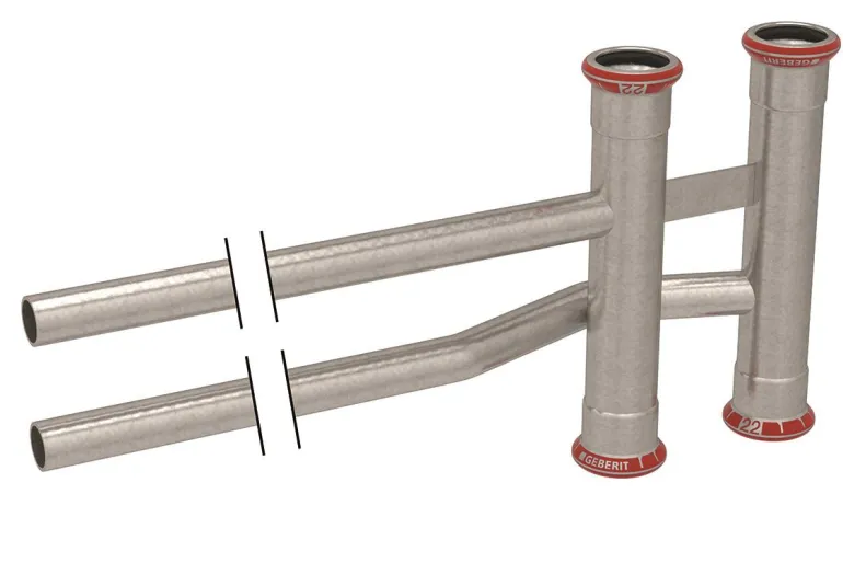 Geberit 1550890 on yksinkertainen, sinkitty haaroitin, jossa 4 muhvia x 2 sileää päätä. Haaroitin kuuluu Geberitin Mapress-järjestelmään. Puristetaan M-leuoilla.
