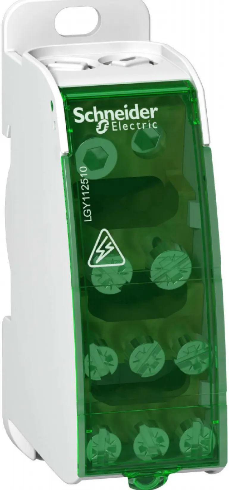 Schneider Electric LGY112510 -jakeluyksikkö, Linergy, 1 P, 125 A, 10 ruuviliitäntää. Pehmeä johdin 2×6-35 mm2 + 2×1,5-16 mm2 + 6×1,5-10 mm2.
