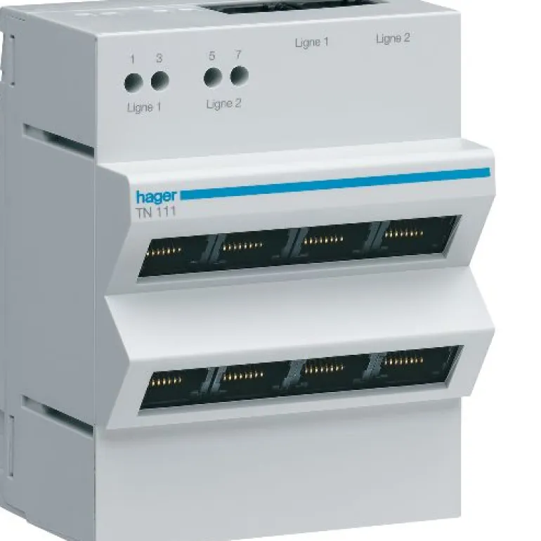 Rinnakkain liitetty haaroitin, jossa on 2 kpl RJ45-tuloa (tai ruuvia) ja 8 kpl RJ45-lähtöä. Haaroitin purkaa saapuvan televiestintäsignaalin ja jakaa sen kahdeksaan lähtöporttiin, jotka on liitetty rinnakkain, ilman salassapitoa.