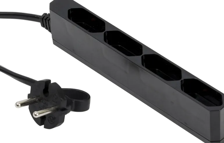 Haaroitusjatkojohto, saatavana valkoinen tai musta malli. Malli on suunnitelttu mahtumaan esimerkiksi kirjahyllyn taakse.