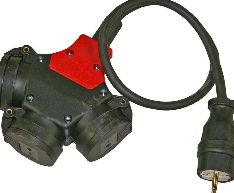 Garo Elflex G-U 230-08 on 3-suuntainen haaroitusnysä, jossa on kaapeli ja pistoke. Integroitu ripustuskannatin toimii myös suojana virheelliseltä kytkennältä.