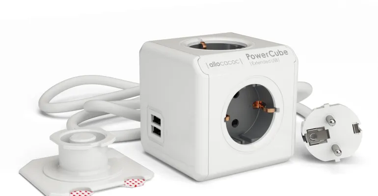 Allocacoc 4000022202 on kompakti ja tyylikäs 4-osainen 230 V, 16 A haaroituspistorasia, joka voidaan sijoittaa haluttuun paikkaan käyttämällä mukana toimitettua itsekiinnittyvää telakkaa. Kiinnitä haaroituspistorasia seinään, työpöytään tai esimerkiksi pöydän alle. Haaroituspistorasian käytännöllisen muotoilun ansiosta pistokkeet eivät ole toistensa tiellä. Siinä on myös 2 USB-liitäntää (2x5V, 2100mA) matkapuhelinten lataamiseen jne. Johdossa on irrotettava johtokiinnike johdon ripustamiseen.