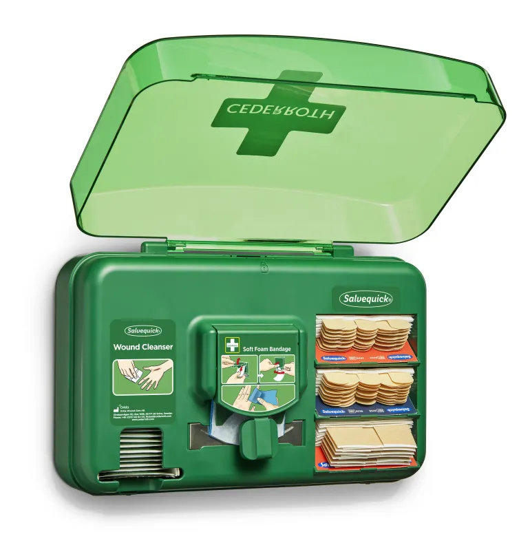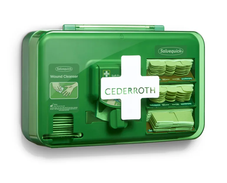 Cederroth 51011006 on haavanhoitoautomaatti, jossa on kaikki tarvittava pienten haavojen hoitoon. Kätevä ratkaisu ensiapuasemien täydentäjänä työpisteissä, joissa laastareiden tarve on ilmeinen.