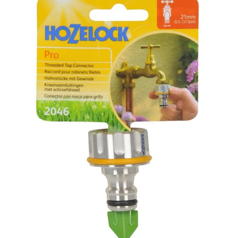 Hozelock 2046 Metall on kierteitetty hanaliitin, joka kiinnittyy varmasti 1/2″:n ulkohanoihin. Liitin on valmistettu nikkelipinnoitetusta messingistä, joten liitin on vahva, kestävä ja kestää naarmuja ja pakkasta. Liitin kiinnittyy tukevasti ulkohanaan ja muuntaa sen Hozelockin pikakytkentäjärjestelmäksi.