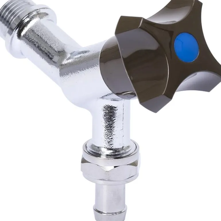 G15 (½”) kromattu hanaventtiili letkuliittimellä, lyhyt rakenne, seinäasennus. Hanaventtiilissä on takaiskuventtiili, joten soveltuu kunnalliseen vesijohtoon.