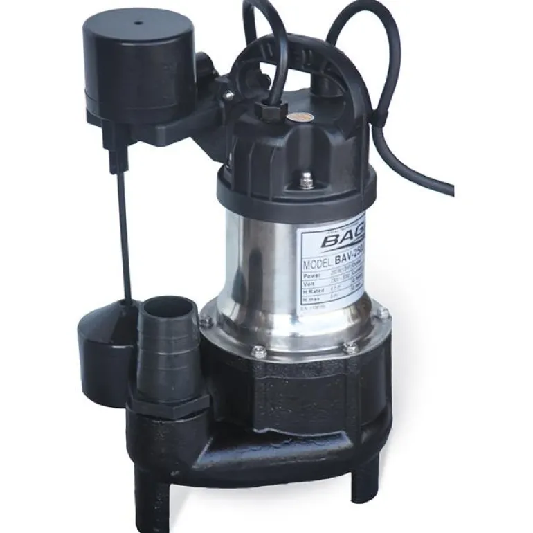 BAGA BAV250J on upotettava harmaavesipumppu, jonka teho on 0,25 kW. Valmistettu valuraudasta, pystysuuntainen kellukeohjaus käynnistystä ja pysäytystä varten. Mukana mekaaninen tiiviste ja vapaavirtauspyörä vapaalla virtauksella.