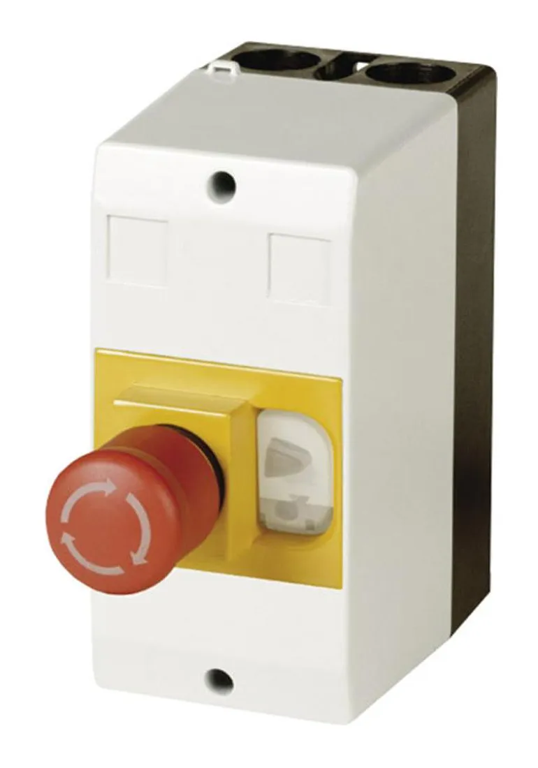 Kiinnikkeet 2xM25 kohokuvioitu, ylös ja alas. Tilaa moottorin suojakytkimelle PRM ja kahdelle kosketinlohkolle.