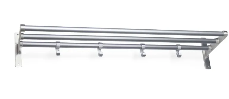 Tyylikäs naulakko, päädyt ja koukut alumiinia. Tangot muovipinnoitettua terästä. Vaatteiden ripustamisen lisäksi soveltuu sekä hattujen että kenkien säilyttämiseen.