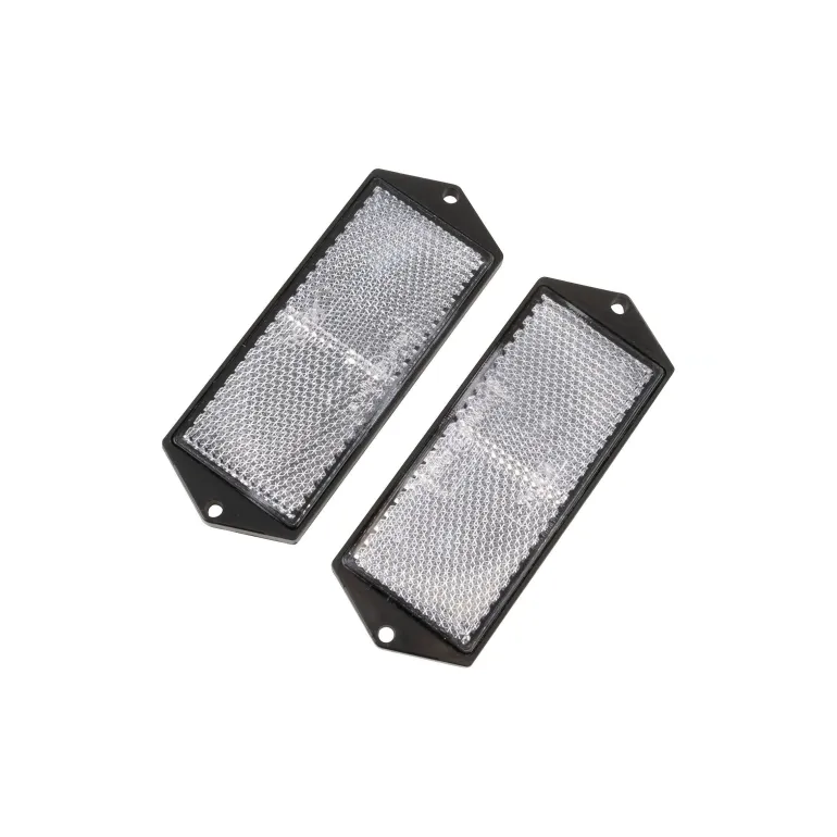 CJ 547173 heijastin peräkärryyn. Valkoinen, suorakaiteen muotoinen heijastin, joka on valmistettu akryyli-/ABS-seoksesta. Myydään 2 kpl pakkauksessa.