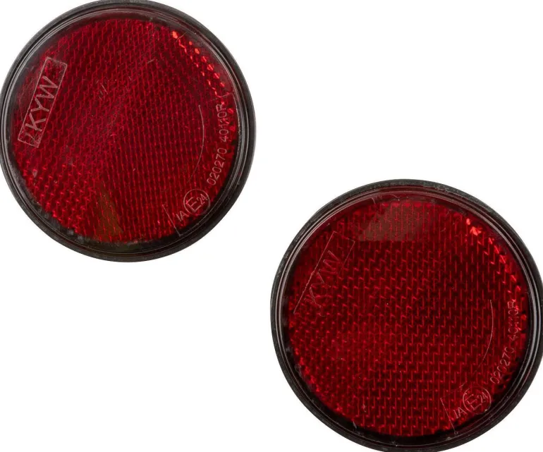 CJ 547177 heijastin peräkärryyn. Pyöreä, punainen heijastin akryyli-/ABS-sekoitteesta. Varustettu ruuvilla kiinnitystä varten. Myydään 2 kpl pakkauksessa.