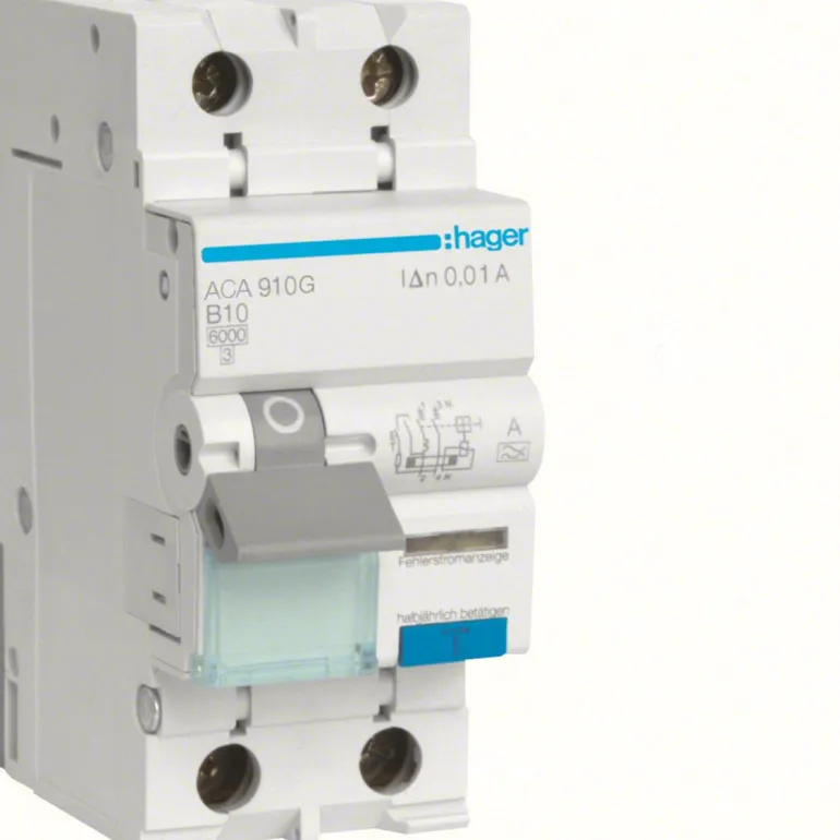 Henkilönsuoja, 1-napainen, + 0 ruuviliitännällä. Henkilönsuoja on 1-napainen suoja 2-napaisella kytkennällä. Se on vikavirtakatkaisimen ja miniatyyrikatkaisimen yhdistelmä. Kokonapainen ja turvallinen erilaisiin tilanteisiin: laitosten maadoitusvikavirrat, ylikuormitus, oikosulku. Tilaa säästävä (2 moduulia) henkilösuojakytkin soveltuu henkilö- ja oikosulkusuojaan (1-vaiheiset pistorasiaryhmät). Vaihekiskoliitäntä mahdollistaa useiden henkilönsuojainten liittämisen.