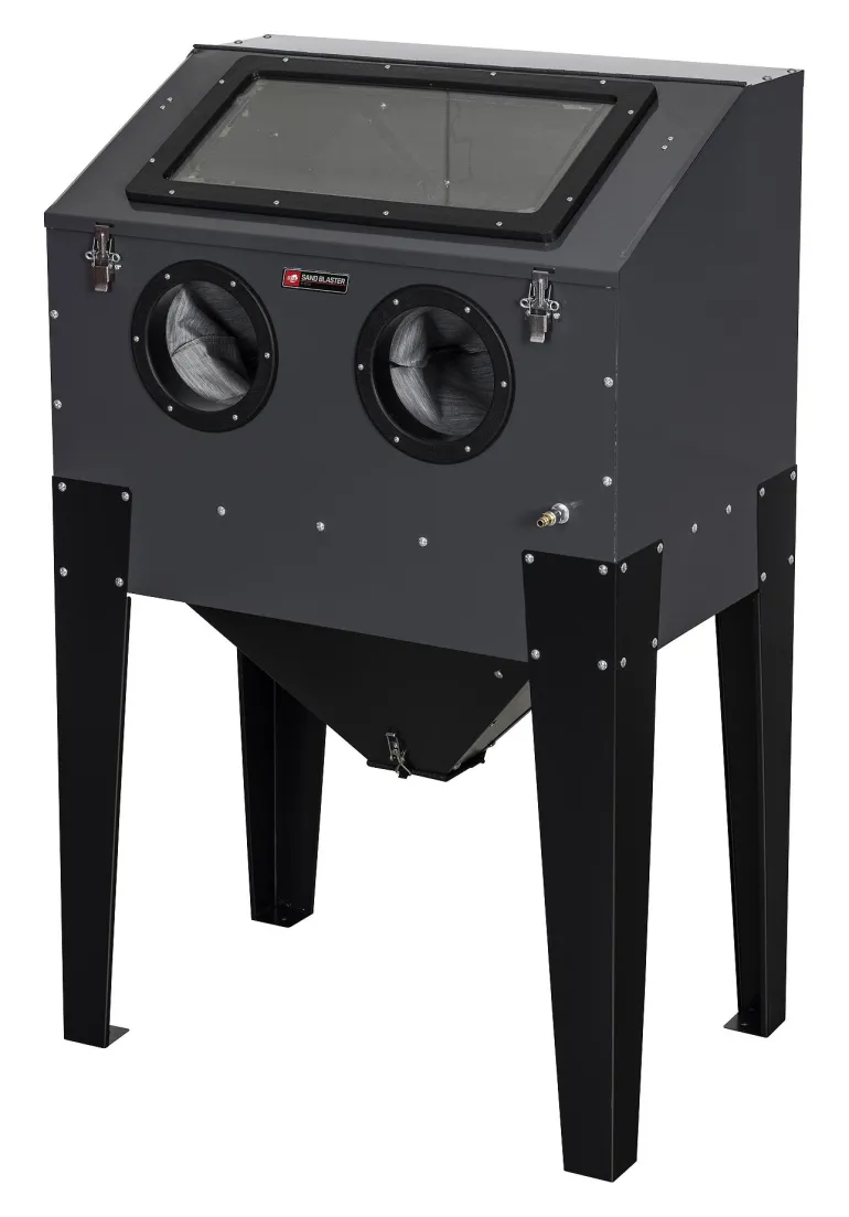 Pela 497931 on lattiatasoinen hiekkapuhalluskaappi, joka toimitetaan täydellisenä käsineiden, sisävalaistuksen, työpöydän, hiekkapuhalluspistoolin ja viiden suojakalvon (suojaikkunalle) kanssa.