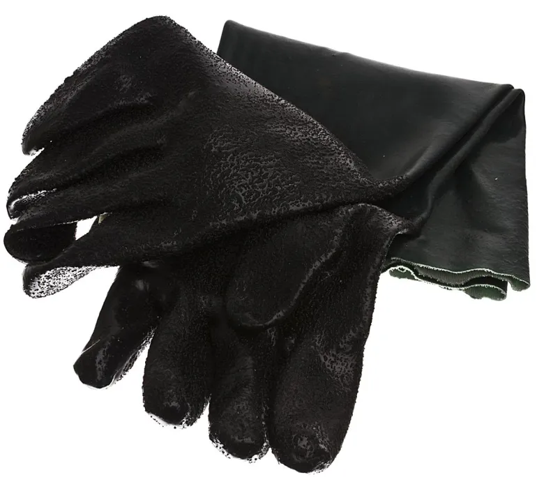 Pela 48966 on pari hiekkapuhalluskäsineitä Pelan pöytätasoiseen hiekkapuhalluskaappiin 497941. Käsinevarren läpimitta 460 mm, varren pituus 280 mm ja käsineen kokonaispituus 480 mm.