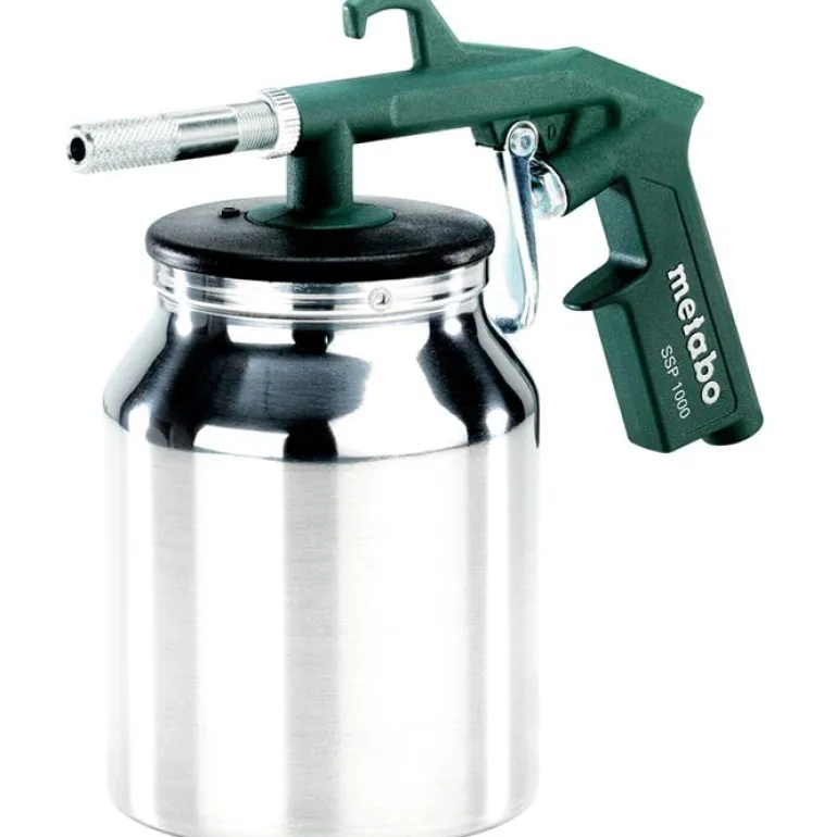 Metabo SSP 1000 on hiekkapuhalluspistooli ruosteen ja maalijäämien poistamiseen nurkista, saumoista ja muilta pieniltä pinnoilta. Yleiskäyttöinen hiekkapuhalluspistooli, joka sopii käytettäväksi kaikkien tavallisten teräslaatujen kanssa.