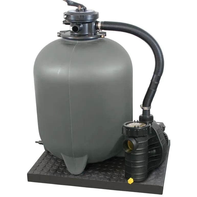 Hiekkasuodatinjärjestelmä XL, 11 m³/h, itse imevä Aqua Plus 11 -pumppu, jossa on esisuodatin, suodatinlevy, 6-tieventtiili painemittarilla ja 690 W:n (0,92 hv, 230 V / 50 Hz) ottoteho. Ø 500 mm:n suodatinsäiliössä on Ø 38 mm:n letkuliitin ja noin 75 kg:n täyttömäärä hiekalle. Mukana suodatinsäiliö, pumppu ja putkiliittimet. Hiekka ei sisälly hintaan.