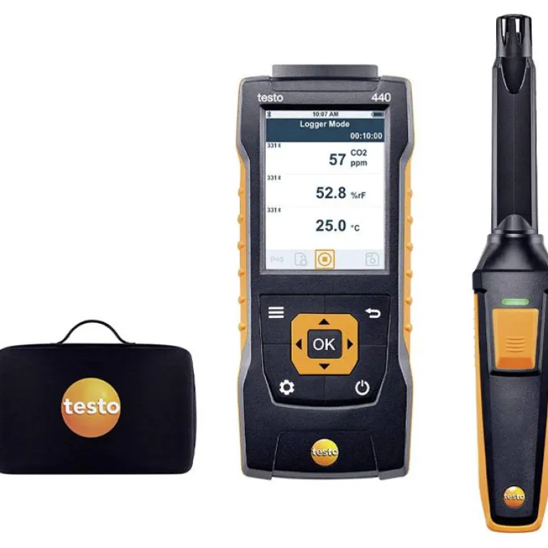 Testo 440 voidaan liittää monenlaisiin digitaalisiin antureihin, Testo SmartProbesiin ja moniin muihin lämpötila-antureihin. Selkeästi jäsennellyt mittausvalikot kanavien/venttiilien tilavuusvirralle, k-kertoimelle, turbulenssiasteelle, jäähdytys-/lämmityskuormitukselle, kosteusvaurioriskille ja lokitoiminnolle. Näiden valikkojen avulla voit suorittaa mittaustehtävät nopeammin, tehokkaammin ja luotettavammin. Raportit voidaan viedä Excel-tiedostoina USB-käyttöliittymän kautta tai tulostaa paikan päällä.