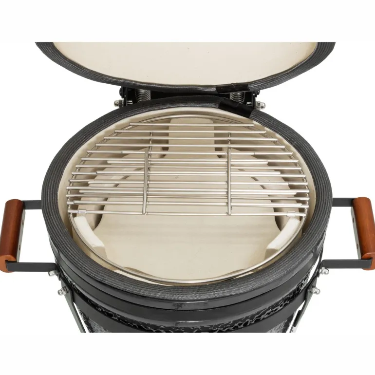 Mustang Kamado S on keraaminen ja kestävä hiiligrilli vaativiin olosuhteisiin. Grillin lämpötila-alue on 82–399 °C ja se voi toimia grillinä, savustus-uunina ja tavallisena uunina.