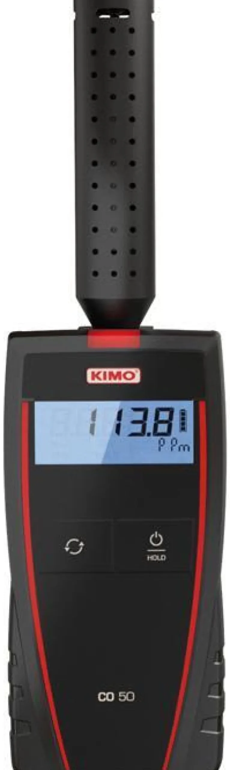 Kimo CO50 on tehokas hiilimonoksidi-/hiilidioksidimittari nopeisiin mittauksiin. Mittaus tehdään sähkökemiallisella tunnistimella, mikä takaa suuren mittatarkkuuden ja nopean mittauksen. Anturissa on myös lämpötilatunnistin, ja lämpötila-arvo näkyy samanaikaisesti näytöllä.