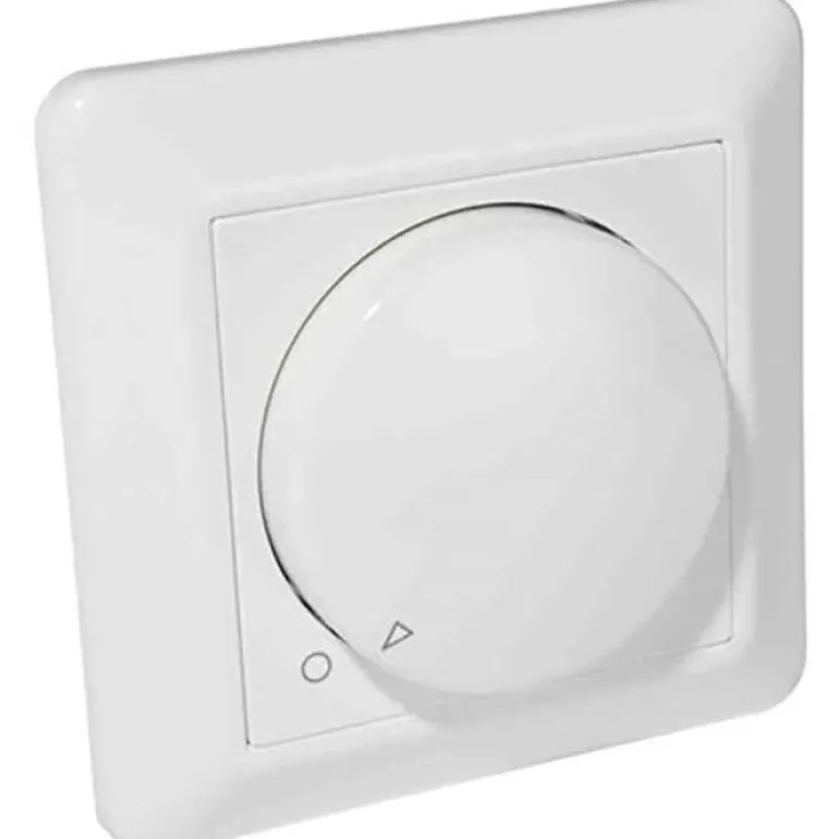 Takareunasäädöllä varustettu himmennin hehku- ja halogeenilamppujen sekä useimpien pienjännitehalogeenilamppujen portaattomaan valonsäätöön. Leveys ja korkeus 86 mm.