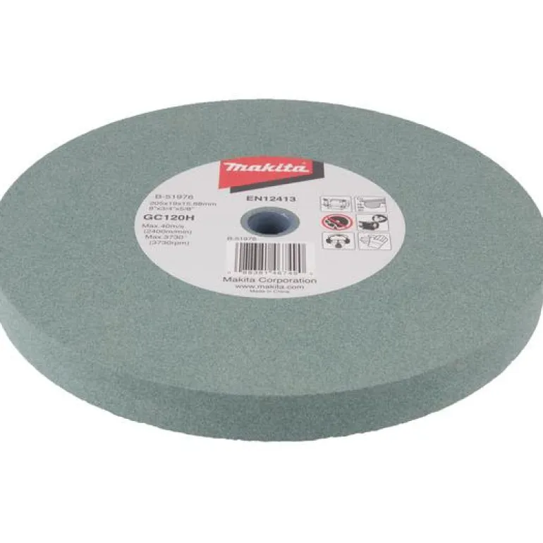 Hiomalaikka, halkaisija 205 mm, reiän halkaisija 15,88 mm, paksuus 19 mm, alumiinille, kuparille ja messingille. Sopii Makita GB801 -penkkihiomakoneeseen.