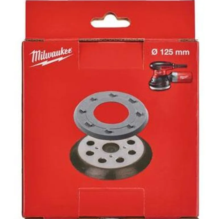 Pyöreä hiomalevy, halkaisija 125 mm, 8 reikää. Mukana kumirengas. Sopii Milwaukee ROS 125 E -epäkeskohiomakoneelle.