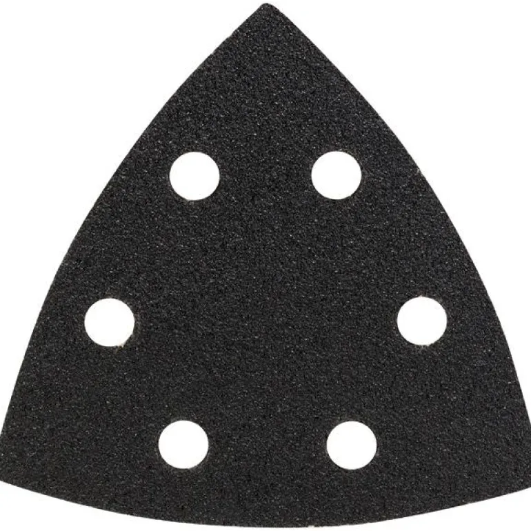 6-reikäinen hiomapaperi, 93 x 93 x 93 mm. Soveltuu kovien materiaalien sekä lakan ja muovin hiomiseen. Karkeus 180. YhteensopivuusSoveltuu deltahiomakoneisiin, joissa on kolmikulmainen 93x93x93 mm:n kokoinen hiomalaatta.