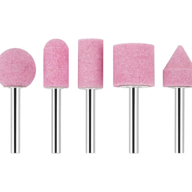 5-osainen hiomakivisarja. Varsi 6 mm. Kulmahiomakoneille ja porakoneille. Karkaisemattomalle ja karkaistulle teräkselle. Karkeus K60.