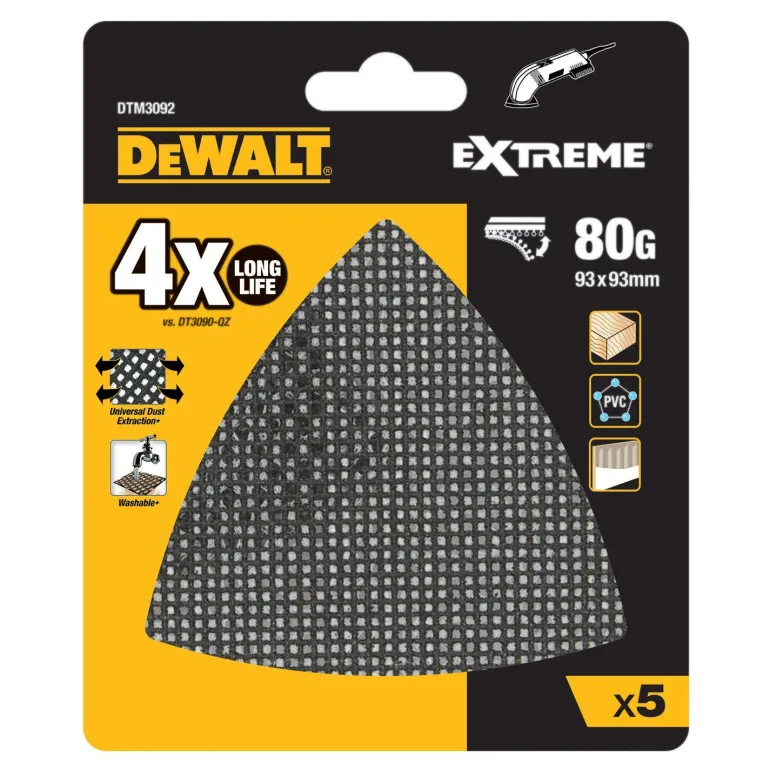 Hiomaverkon avoin rakenne minimoi tarkan asemoinnin tarpeen. Tarranauhakiinnike kiinnittyy nopeasti hiomakoneeseen ja pitää arkin paikallaan. Sopii puun ja maalattujen pintojen hiontaan. Piikarbidirakeiden ansiosta käyttöikä on jopa neljä kertaa pidempi kuin DEWALT-vakioarkeilla. Pöly voidaan helposti pestä pois. Kuivauksen jälkeen verkko on taas käyttövalmis. Soveltuu käytettäväksi kaikkien yleishiomakoneiden kanssa.