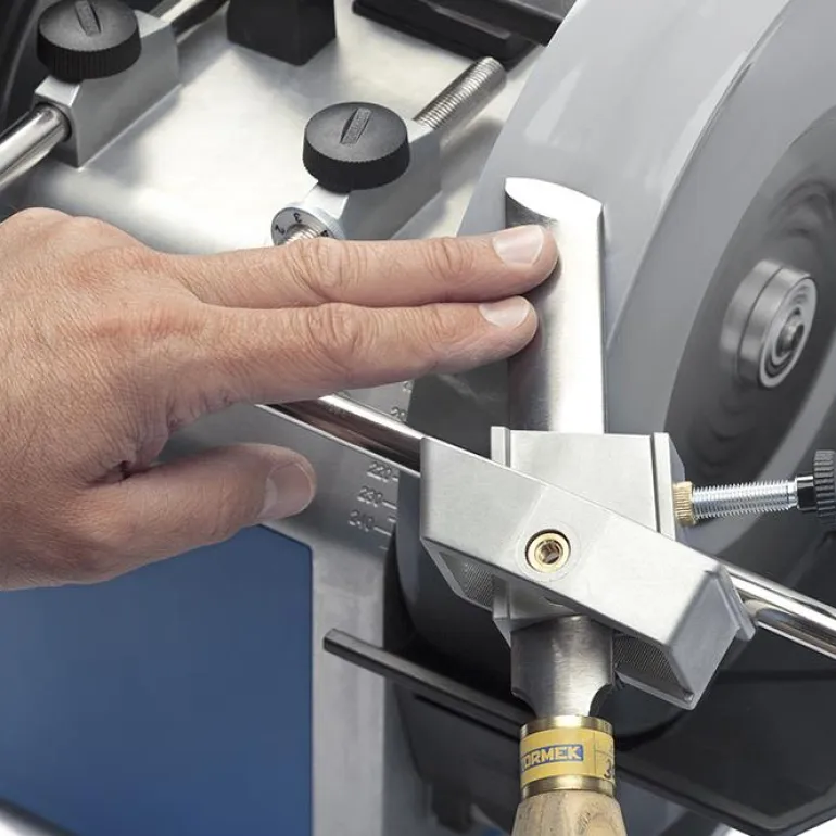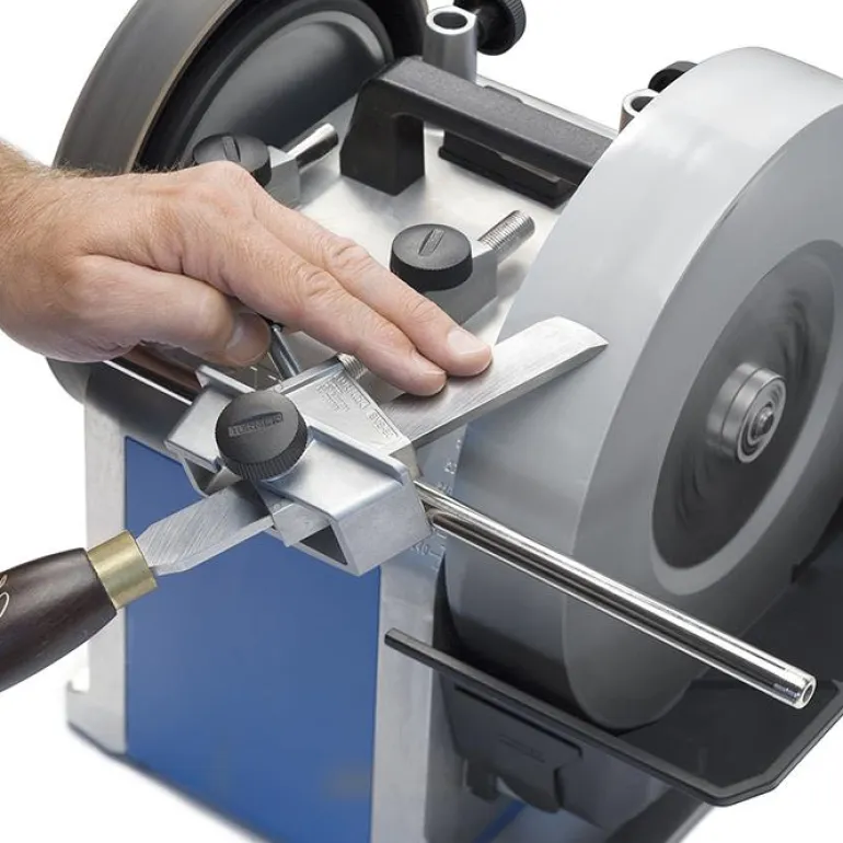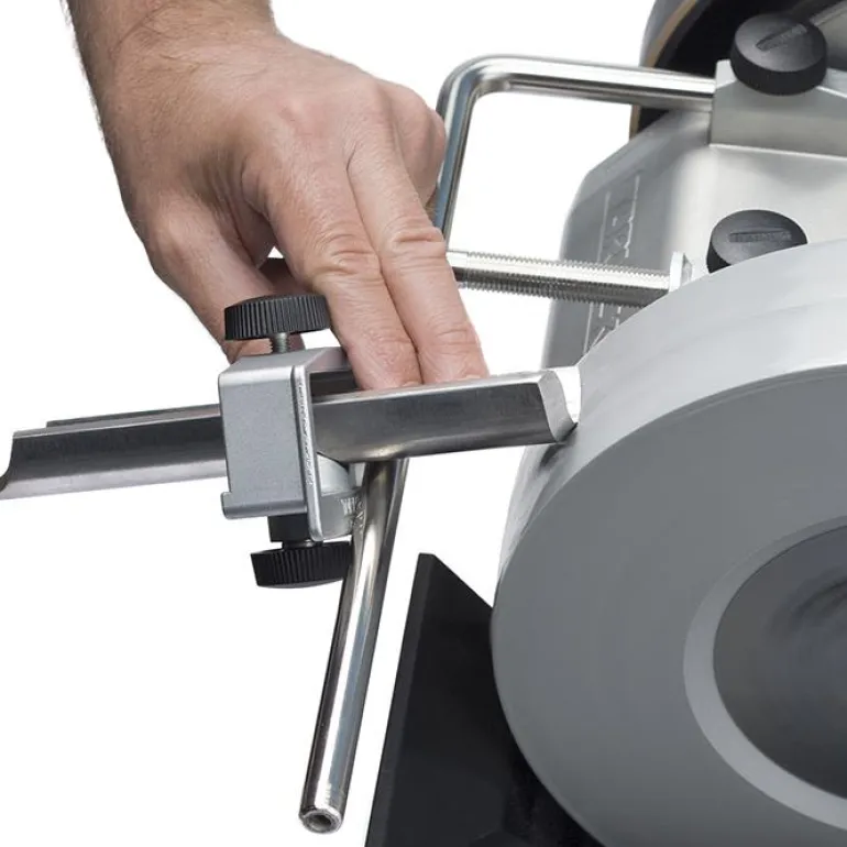 Onko sinulla uusi sorvaustyökalu, jonka terästä tarvitsee poistaa paljon materiaalia profiilin muokkaamiseksi? Asennussarjan BGM-100 avulla voit käyttää SVS-50:tä myös penkkihiomakoneessa. Ole kuitenkin varovainen, ettet polta terää. Kun olet hionut karkeasti terän penkkihiomakoneessa, siirry Tormek-laitteeseen ja viimeistele terän teroitus.