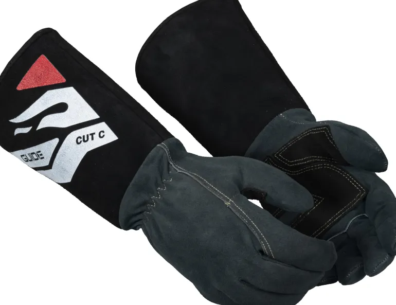 Guide Gloves 3571 on hitsaus- ja lämpösuojakäsine viiltosuojaustasolla C. Käännetty vuohennahka lisää käyttömukavuutta. Käsineessä on Kevlar-vuori ja ylimääräinen Nomex-vuori kämmenselän puolella, joka antaa käsineelle loistavan lämpösuojan. Ranneke on valmistettu lehmännahasta. Siinä on puuvillavuori ja kaikki saumat on valmistettu lämmönkestävästä kevlarista. Sopii yleiskäsineeksi kuumissa ympäristöissä sekä MIG/MAG-hitsaukseen. Täyttää standardien EN407 ja EN12477 tyypin A vaatimukset.