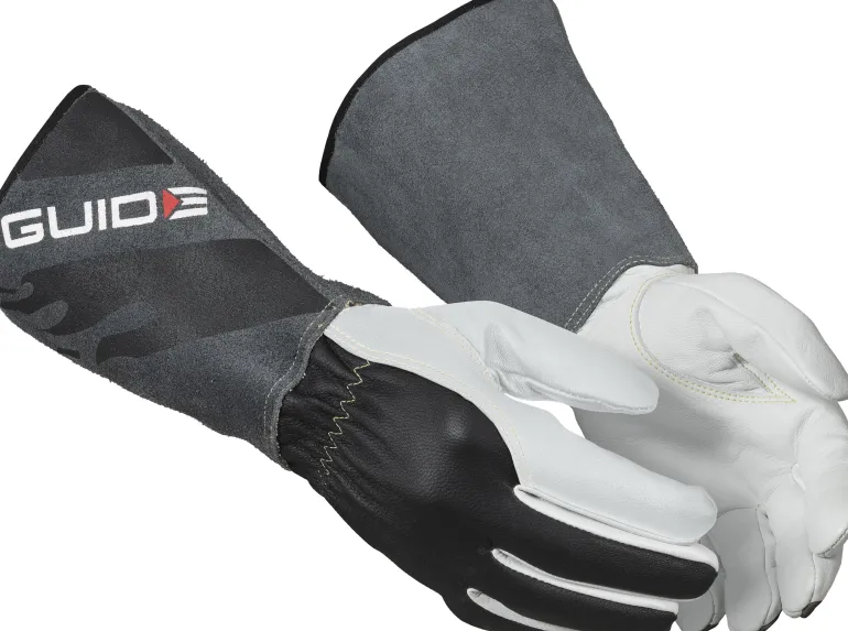 Guide Gloves 1230 on hitsauskäsine, jossa kämmenessä ja kämmenselän puolella kestävää ja pehmeää vuohen martionahkaa. Sopii TIG-hitsaukseen. Ranneke on valmistettu lehmän haljasnahasta. Sen sisäosassa on ohutta puuvillakangasta ja kaikki saumat on valmistettu lämmönkestävästä kevlarista. Käsineessä on sormissa sivupinnat, jotka antavat parasta mahdollista sorminäppäryyttä ja käyttömukavuutta. Täyttää standardin EN12477 tyyppi B vaatimukset.
