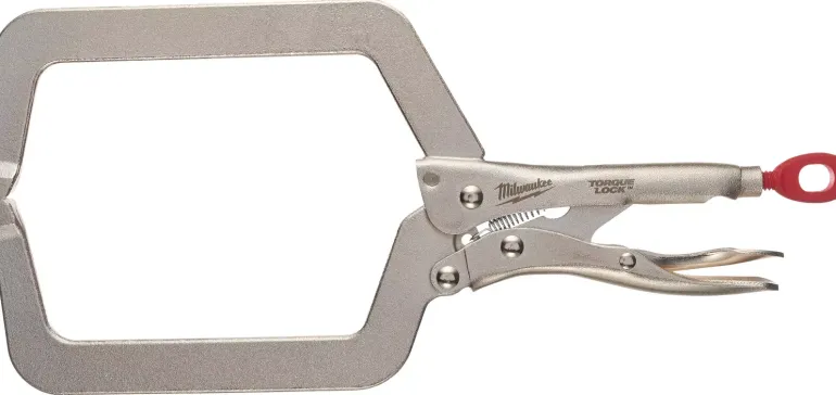 Milwaukee TORQUE LOCK on 480 mm:n hitsauslukkopihdit, leukakapasiteetti 170 mm, syvät kiinteät painokengät – kärki.