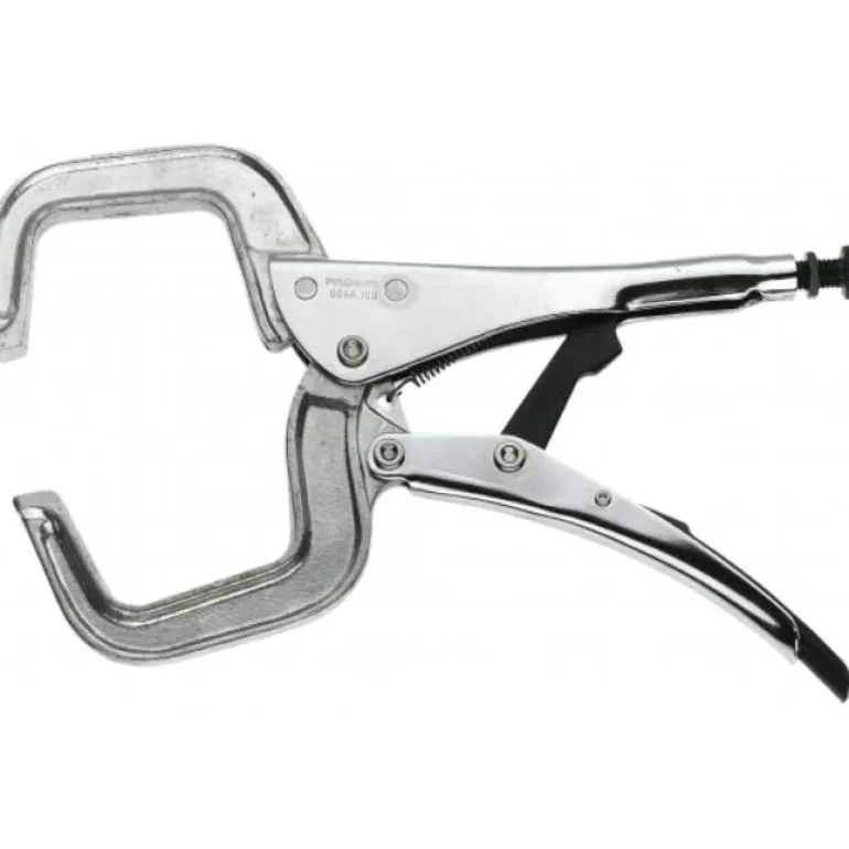 Facom 504A on kromipinnoitettu C-muotoinen hitsauspihti joutsenkaulamuotoilulla. Pihdeissä on kevytmetalliseoksesta valmistetut leuat, teräsrunko, asetusruuvi ja turvallinen kiinnitin hitsaukseen.