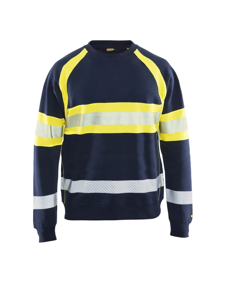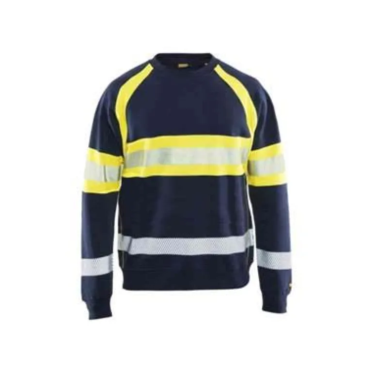 Pehmeä ja mukava huomiopaita, jonka painetut katkoheijastimet parantavat joustavuutta ja hengittävyyttä. Puseron tumma osa on 100 % puuvillaa ja huomiovärinen osa 100 % polyesteria. Puserossa on käyttömukavuutta lisäävä pyöreä pääntie sekä resori helmassa ja hihansuissa. Pyöreä pääntie, vahvistettu niskasauma, Blåkläder-painatus olkapäällä, resorit helmassa ja hihansuissa. 50 mm leveät heijastimet. Materiaali: 100 % puuvillaa, collegekangasta, 320 g/m².